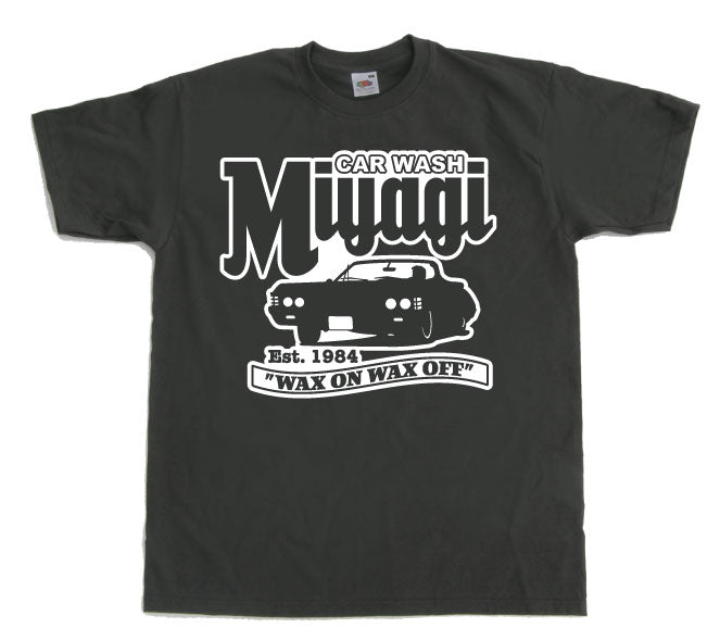 Helgrym t-shirt med Car Wash a la Mr Miyagi som myntade orden "Wax On Wax Off"!