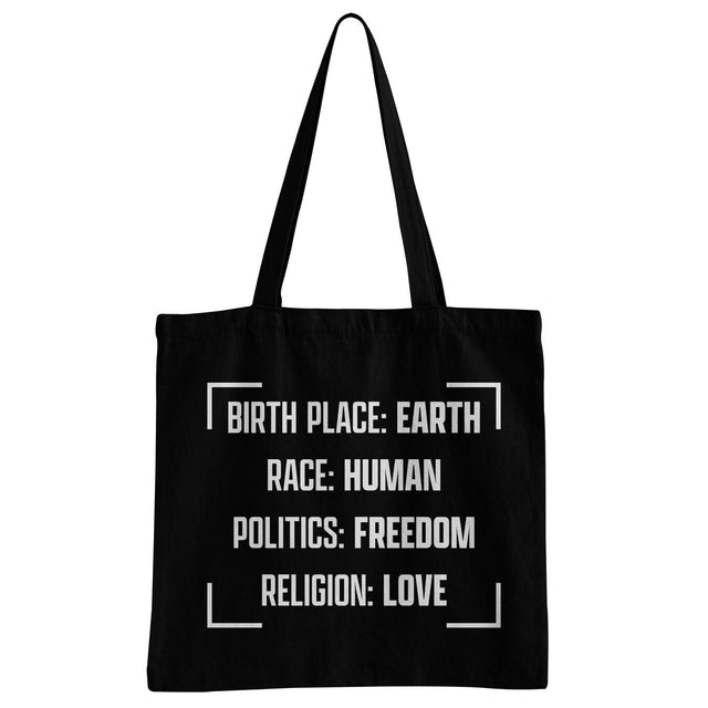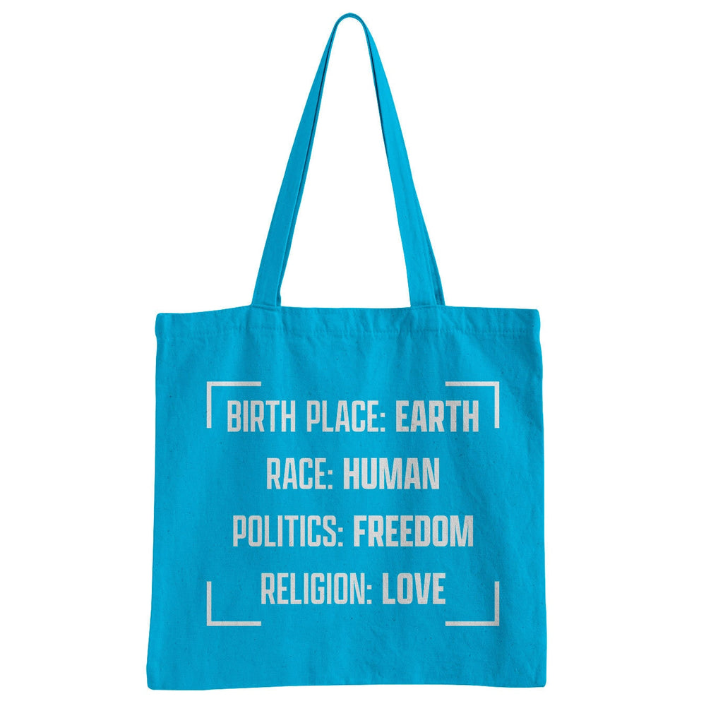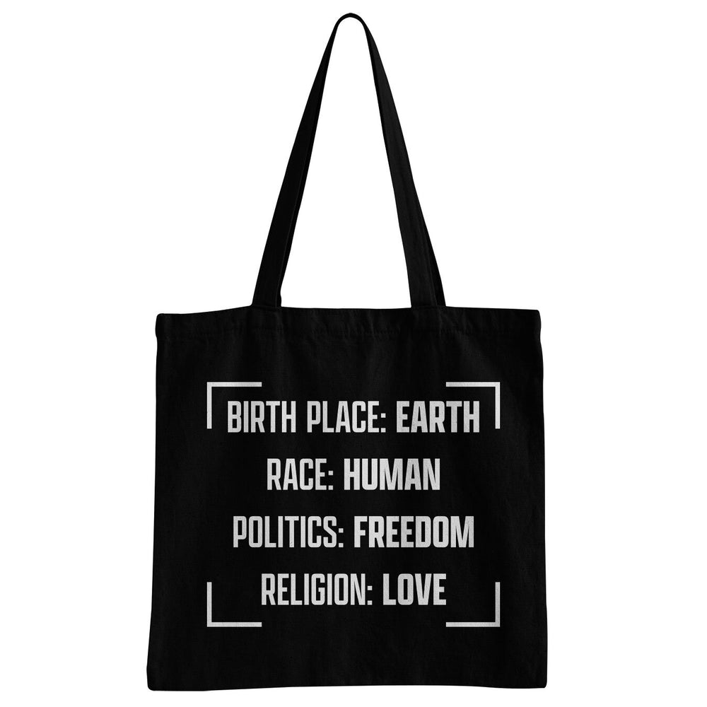 Birthplace Earth - Race Human - Politics Freedom - Religion Freedom Tote Bag