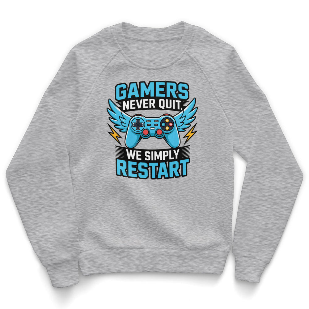 Gamers Never Quit - We Simply Restart Kids Sweatshirt