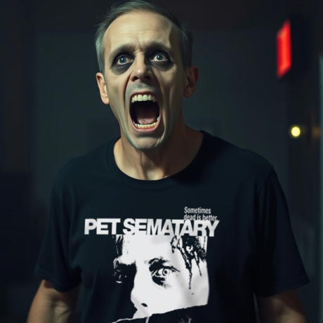 Det är något specielt med att titta på en skräckfilm i mörkret – hjärtat rusar, popcorn som flyger, skuggor som rör sig lite för snabbt. Och när eftertexterna rullar behöver skräcken inte ta slut. Vår stora kollektion med skräckfilms-t-shirts låter dig klä dig i mardrömmen! Legendariska blodiga logotyper, kultmördare och snygg vintage VHS-artwork!
